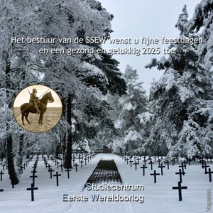 wenst het bestuur van het Studiecentrum Eerste Wereldoorlog alle donateurs, betrokkenen, geïnteresseerden en hun dierbaren een fijne tijd toe, met ruimte voor ontspanning en rust. Uiteraard hopen wij jullie ook in 2025 weer met inspirerende activiteiten te kunnen verrassen!