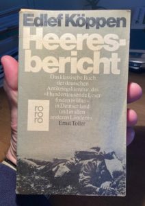 Het boek dat mij het meest is bijgebleven en daarmee aanzienlijk heeft bijgedragen aan mijn interesse voor de Eerste Wereldoorlog was en is Heeresbericht van Edlef Köppen. Ik kan het iedereen aanraden die iets van de duistere sfeer van die tijd wil proeven.