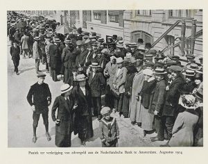 Na de moord op de kroonprins van Oostenrijk-Hongarije groeit de onrust in Europa. Landen mobiliseren hun legers. Hoewel Nederland strikte neutraliteit wil handhaven, worden ook hier mannen opgeroepen om hun dienstplicht te vervullen. Op de beurs in Amsterdam gaat het er onrustig aan toe. Nadat beurzen elders in Europa sluiten, sluit ook het Damrak de deuren.