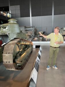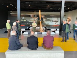 Conservator Mathieu Willemsen nam ons mee op een bijzonder informatieve trip langs de Eerste Wereldoorlog stukken van het museum. En passant vertelde Mathieu ook nog allerlei wetenswaardigheden over de voormalige vliegbasis Soesterberg; de oprichting van de luchtvaartafdeling van de Koninklijke Landmacht in 1913, de inname van de basis door de Duitsers in de Tweede Wereldoorlog en vorming de thuisbasis van de Nederlandse luchtmacht en van het Amerikaanse 32nd Tactical Fighter Squadron na 1945. In 2008 werd de vliegbasis Soesterberg gesloten.