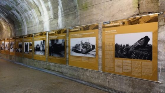 Aan de evolutie van de tank worden maar liefst elf borden gewijd waarvan negen over de periode 1916-1918. Van de Britse Mark I tank uit 1916 naar de Franse Renault FT-17 met een draaibare koepel uit 1918. Van stormram om door loopgraven heen te breken tot het aanvalswapen van de mobiele oorlogvoering.