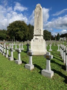 In Luik werd de begraafplaats Robermont bezocht, een indrukwekkende plek waar militairen van verschillende nationaliteiten aanpalend aan de burgergraven begraven liggen.